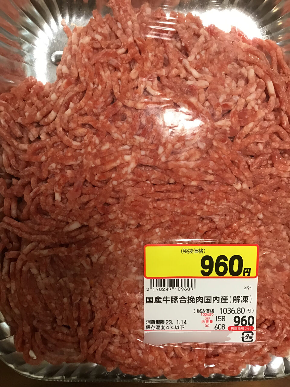 前に買って冷凍していたロピアの国産合い挽き肉。
