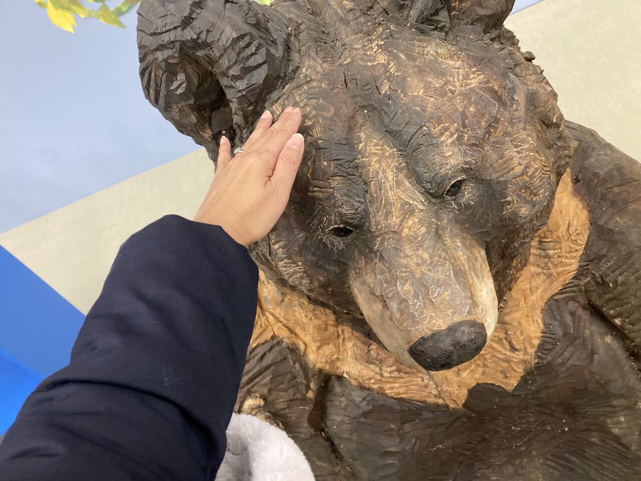 「私、熊撫でてきたんよ」