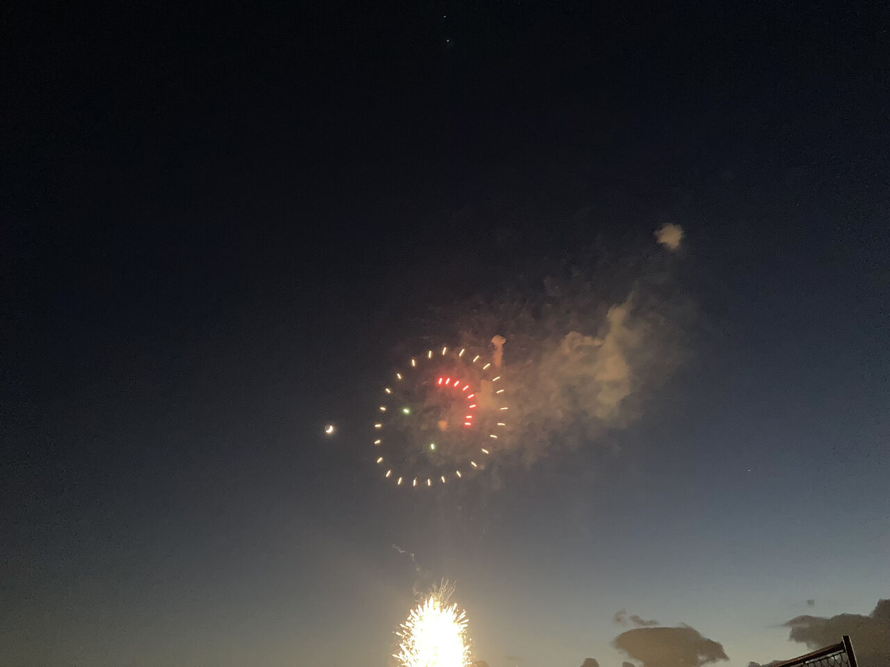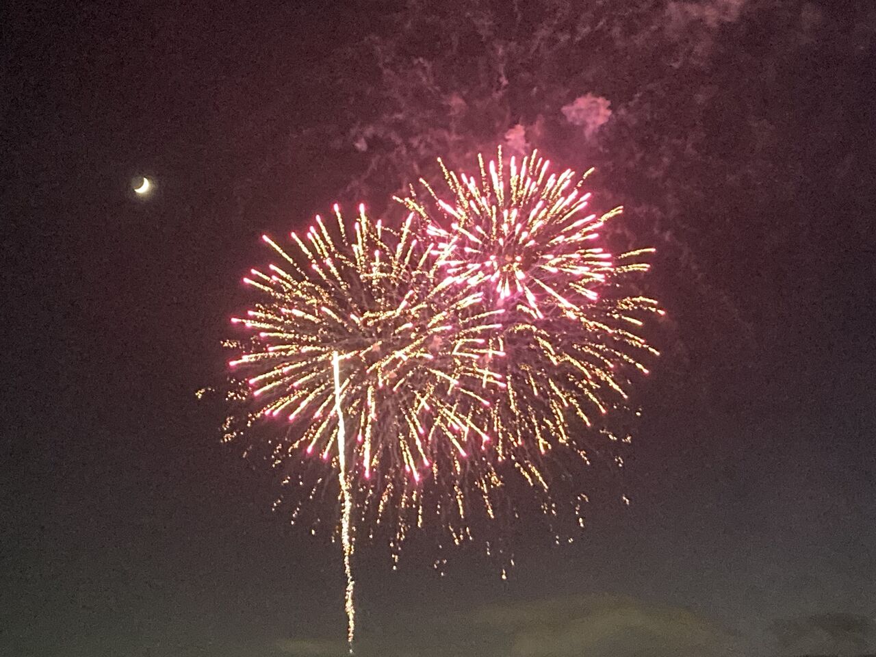 花火と三日月のコラボ。